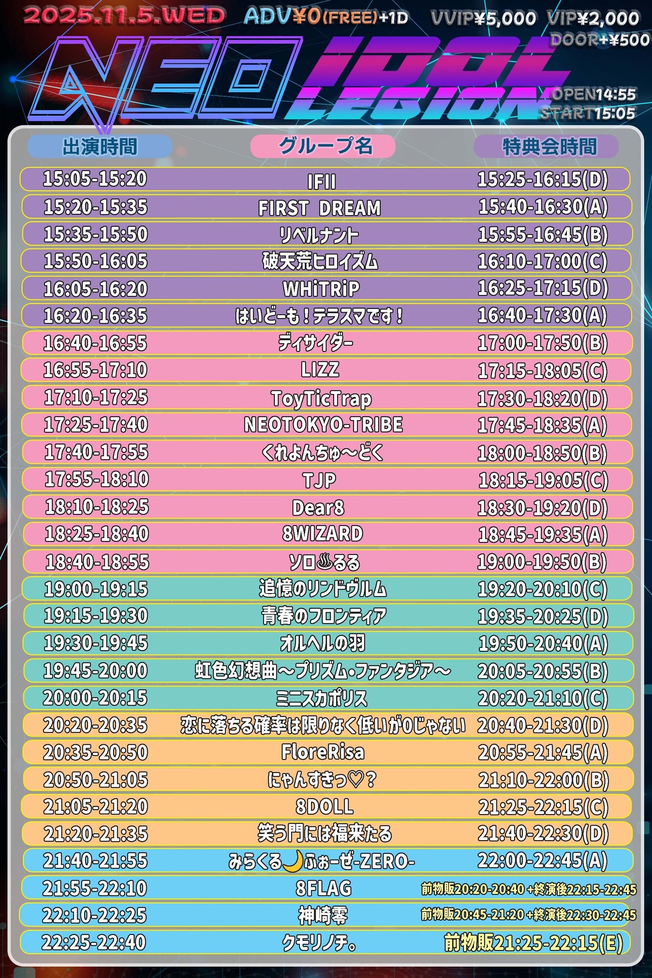 11/5(水)新宿DHNoA 『NEO IDOLEGION FREELIVE Vol.102』