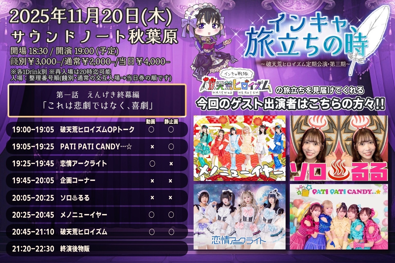 ソロ♨️るる出演『破天荒ヒロイズム定期公演・第三期「インキャ、旅立ちの時」 💜第一話 えんげき終幕編〜これは悲劇ではなく喜劇〜』@サウンドノート秋葉原