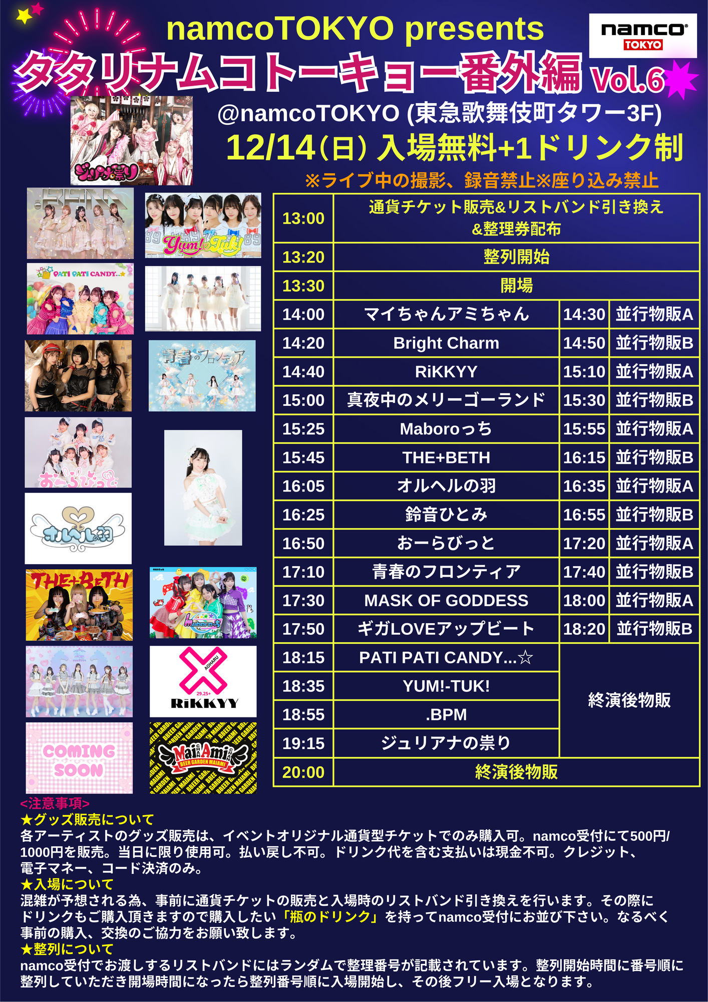 12/14(日) 東急歌舞伎町タワー3F@namcoTOKYO