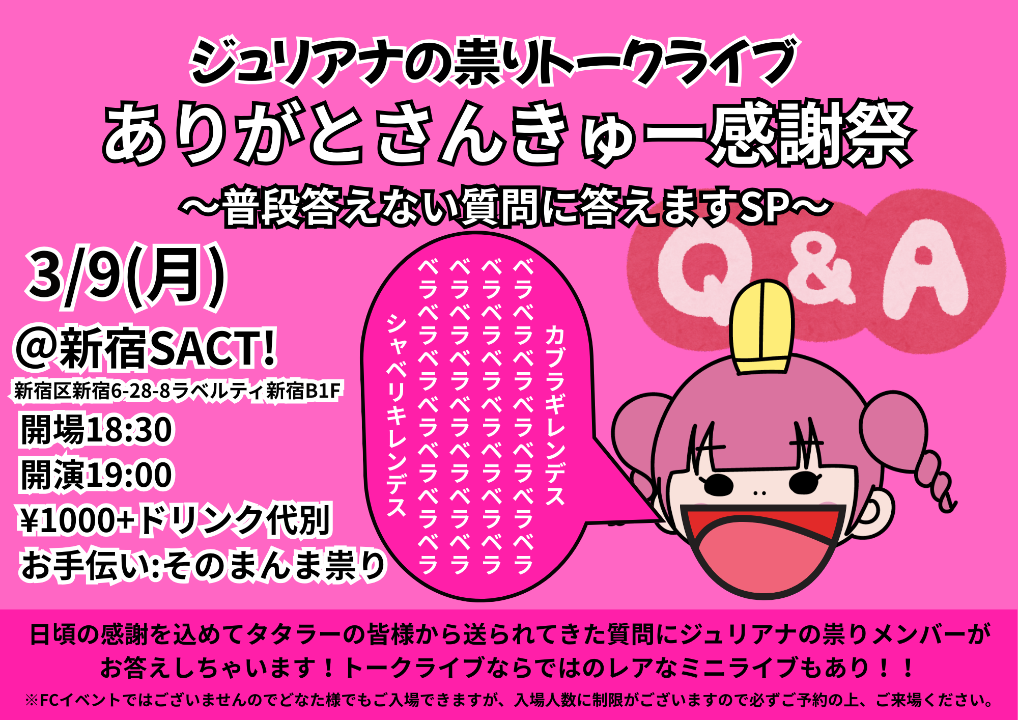 トークライブ 「ありがとさんきゅー感謝祭〜普段答えない質問に答えますSP〜」@新宿SACT!