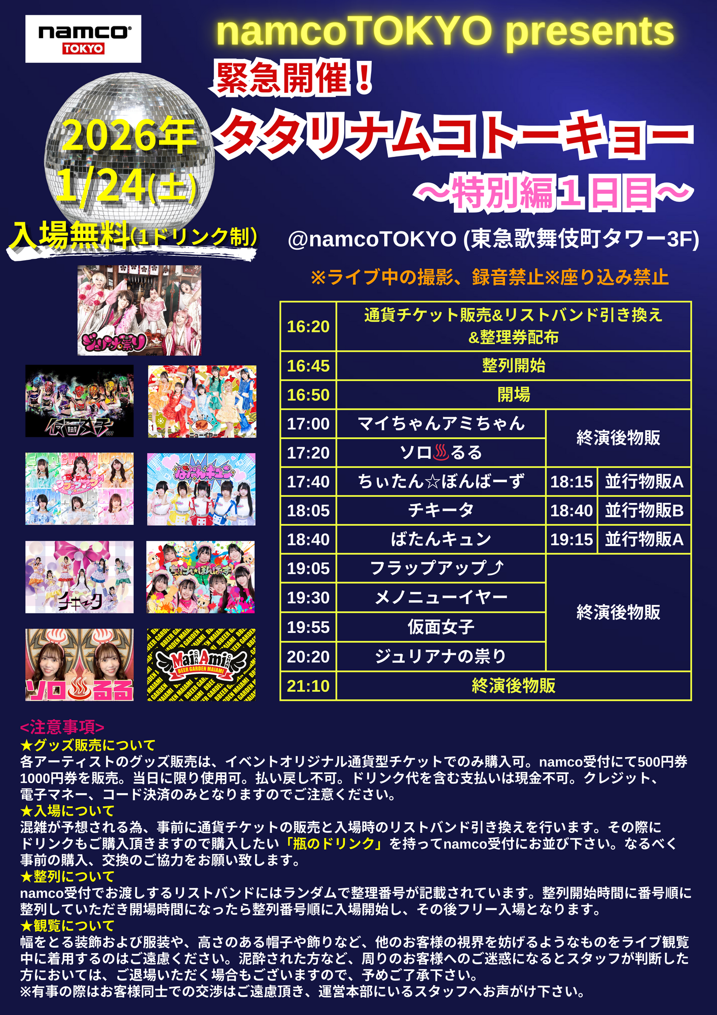 1/24(土)東急歌舞伎町タワー3F@namcoTOKYO