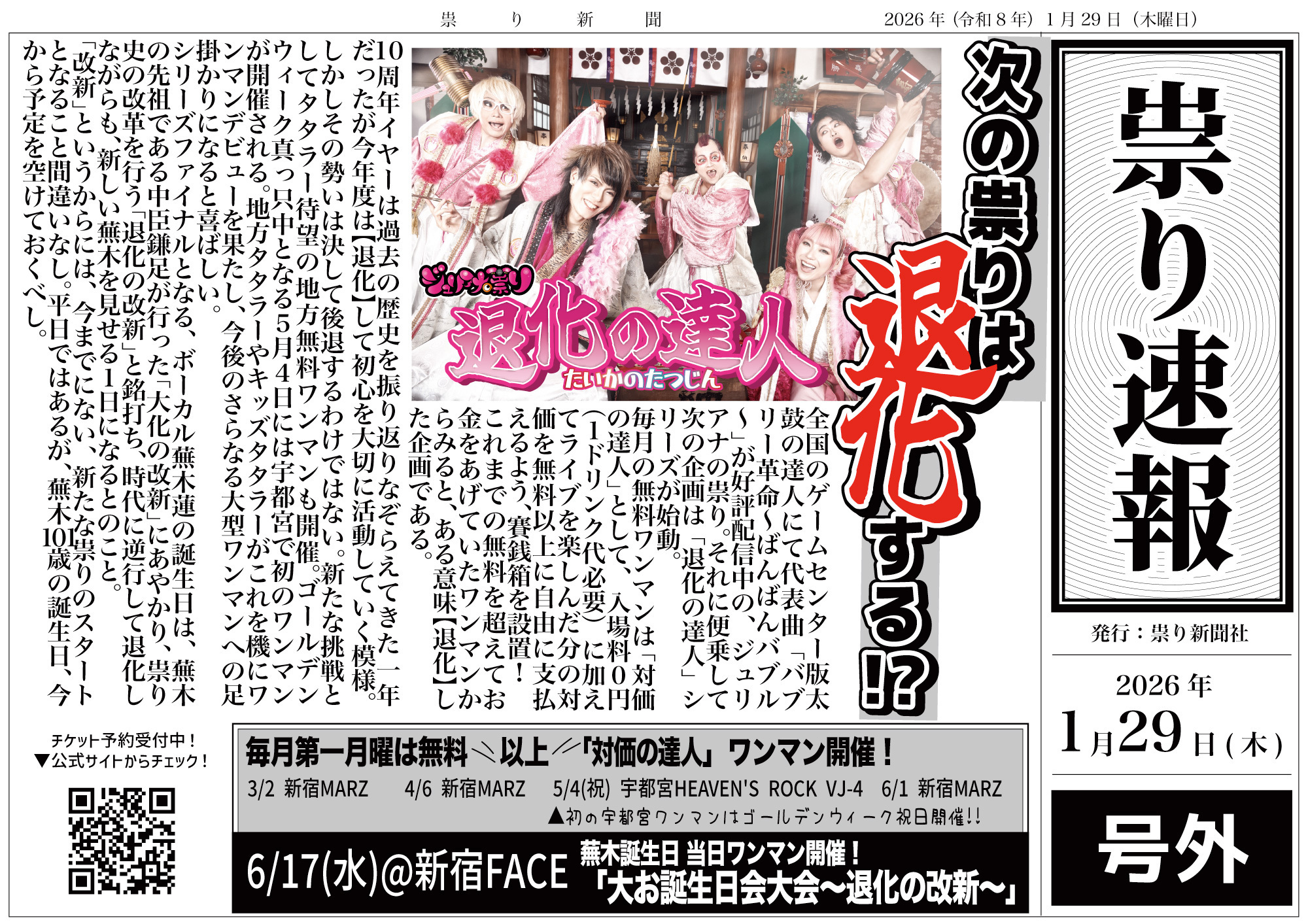 蕪木誕生日当日ワンマン!「大お誕生日大会〜退化の改新〜」