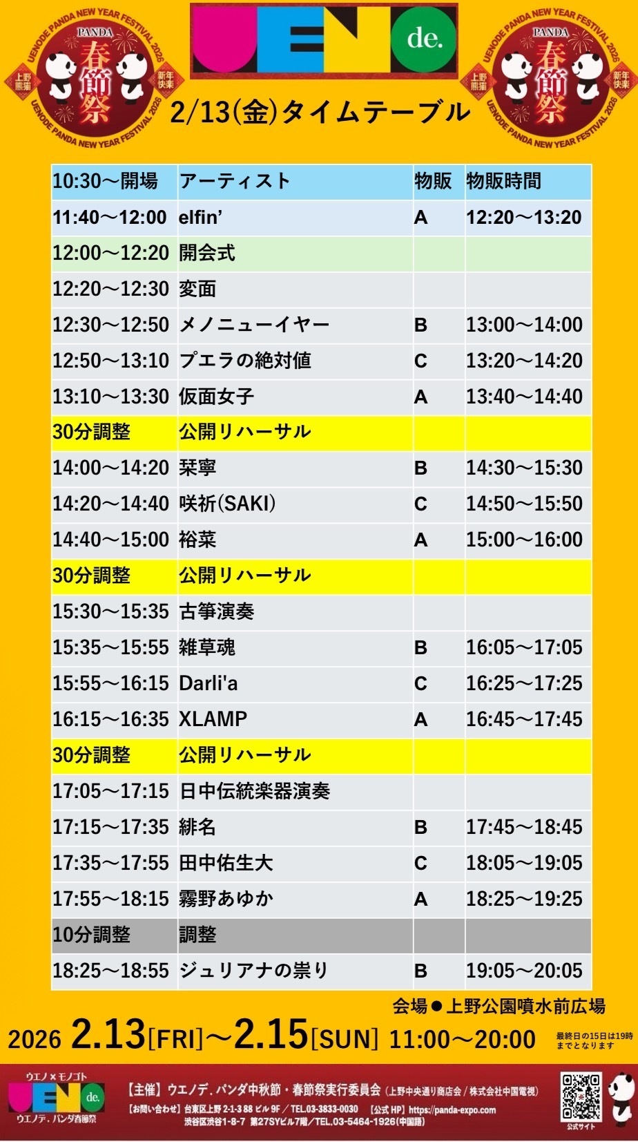 2/13(金)@上野恩賜公園噴水前広場 特設会場