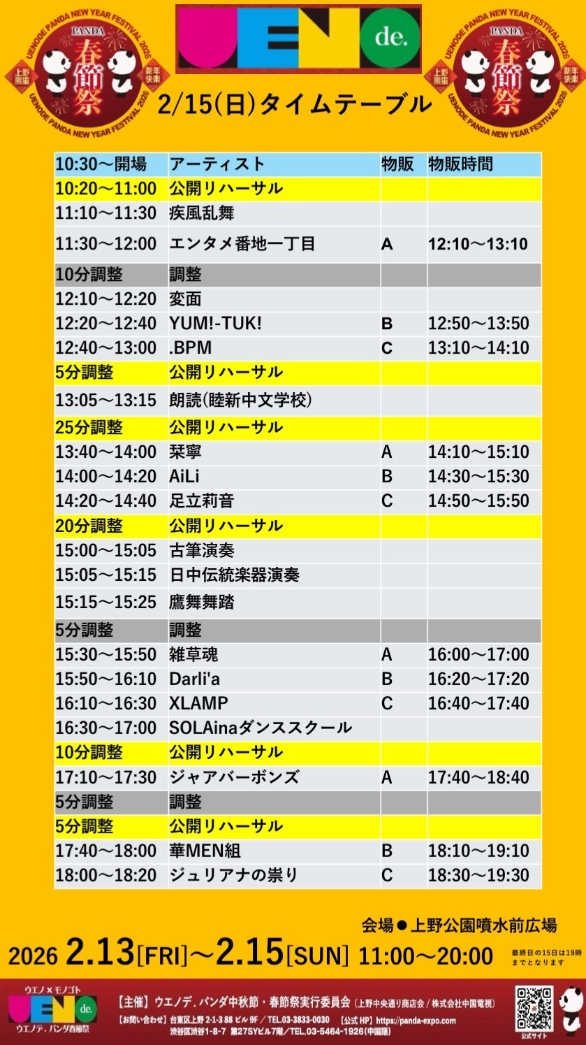 2/15(日)@上野恩賜公園噴水前広場 特設会場