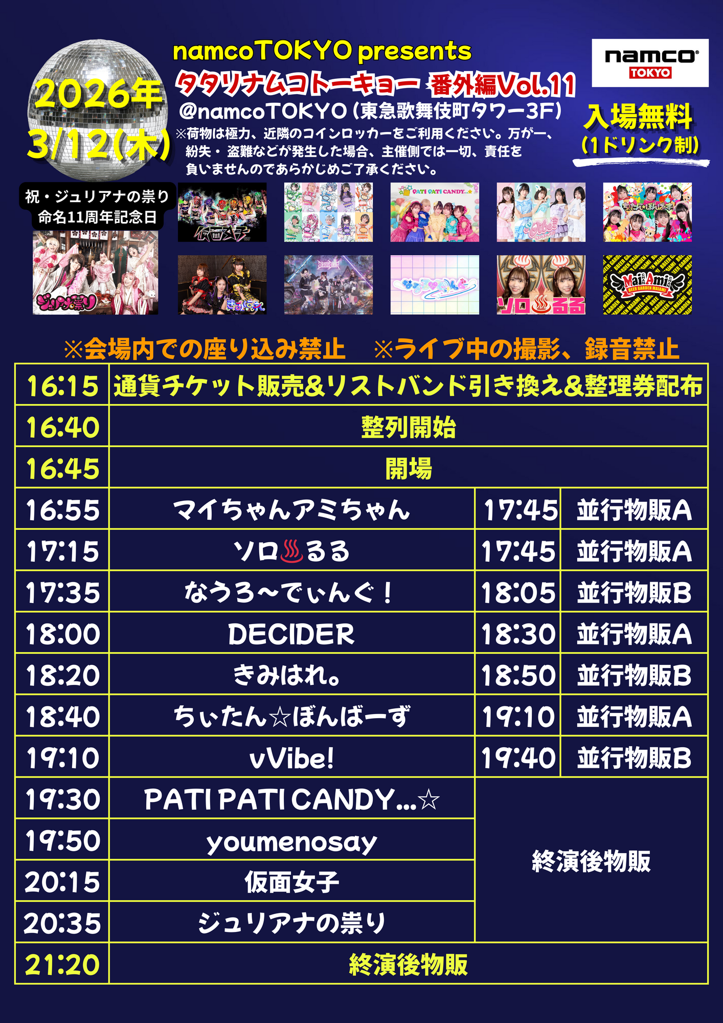 「namco TOKYO presents タタリナムコトーキョーVol.11」@東急歌舞伎町タワー3F namcoTOKYO