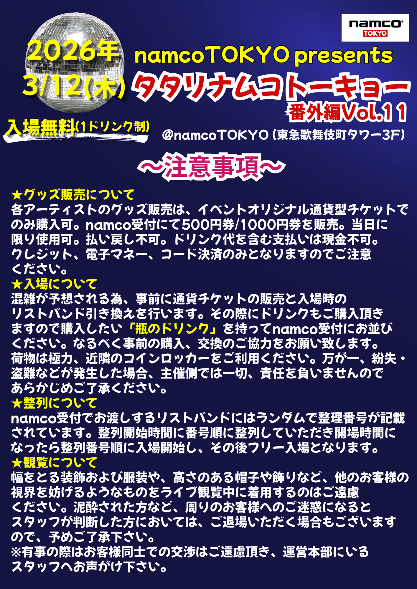 「namco TOKYO presents タタリナムコトーキョーVol.11」