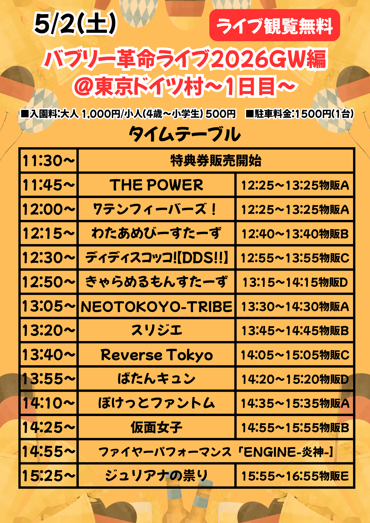 「バブリー革命ライブ2026GW編@東京ドイツ村〜1日目〜」@東京ドイツ村(マーケットエリア内おかのうえステージ)