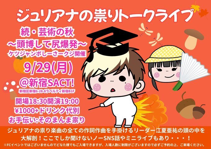ジュリアナの祟りトークライブ 「続・芸術の秋〜頭博して尻爆発〜 ケツジャンボしーさークジ開催!」@新宿SACT!