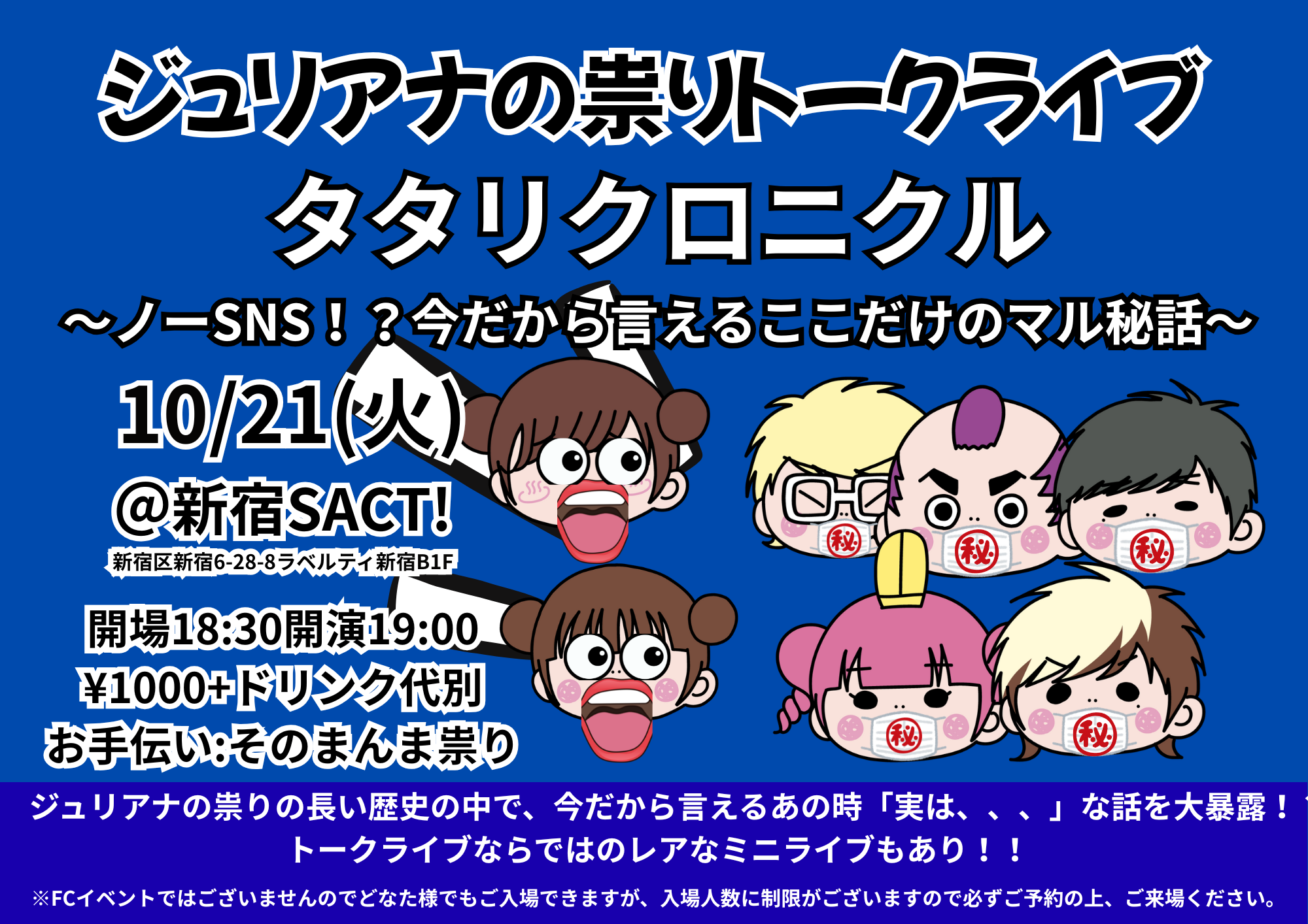 ジュリアナの祟りトークライブ「タタリクロニクル〜ノーSNS!?今だから言えるここだけのマル秘話〜」 @新宿SACT!